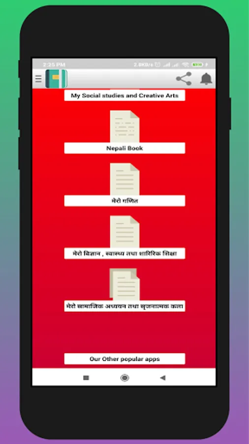 All Books app is totally free for all Nepali teachers. From this app, you can get all subject books and teacher guides in both Nepali and English both language. This app is made to help Teachers. This app make for education purposes only if you face any problems with this app please email directly to iamujwl@gmail.com