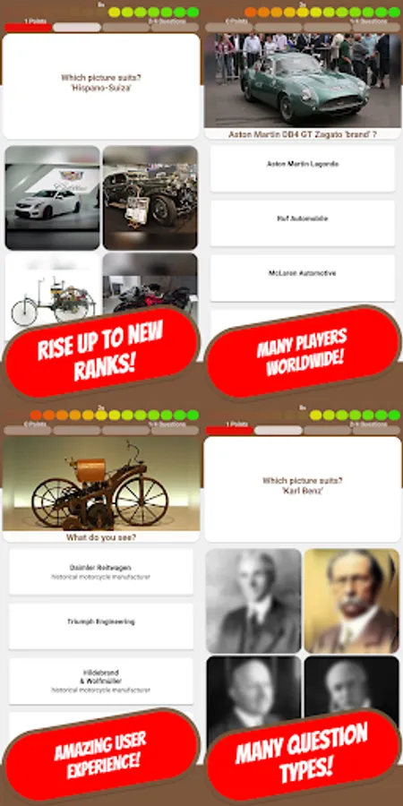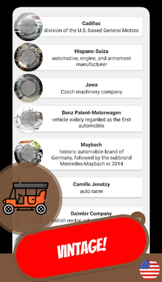 You’ll learn much about Vintage Cars while answering quiz questions! Rise up to new levels!