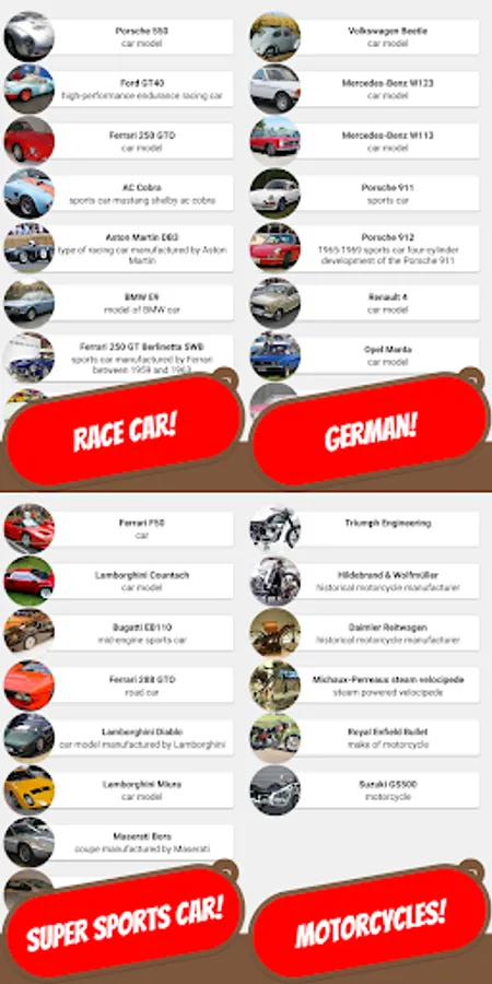 “CLASSIC CAR & RETRO Quiz 🏎️ 𝟚𝟘𝟚𝟘 🚗” is not just a simple ClassicCar quiz app but also a great ClassicCar encyclopedia.