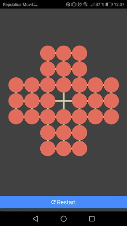 Senku is an abstract solitaire board game from Madagascar. The goal of the game is to achieve to capture all the pieces until there is only one left. At the beginning of the game are all occupied spaces except the central one and which space will have to be occupied with the last move. Pieces may be moved only by capturing as with Checkers.