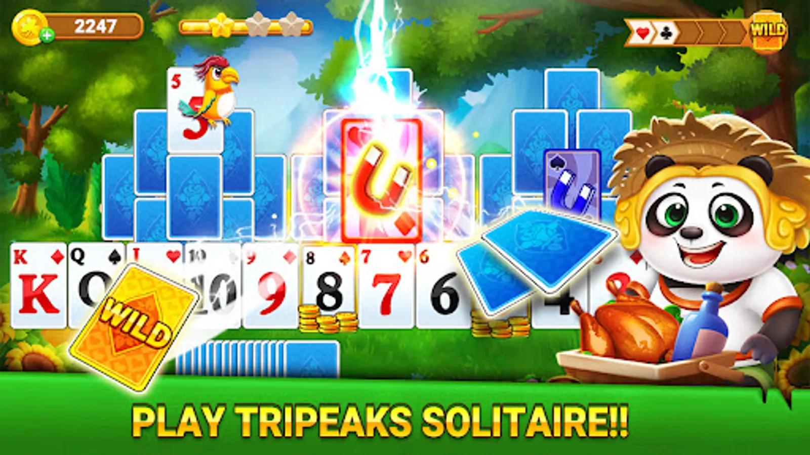 Solitaire TriPeaks Panda Farm: the classic Solitaire TriPeaks card game! With over 3000 levels to wander and win free coins! Train your brain playing alongside in this free solitaire game!