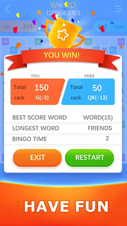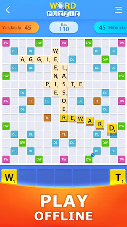 The gameplay of the game is classical to crosswords board games. Create and place words on the board and boost your score by placing letters on DL/TL/DW/TW squares.
