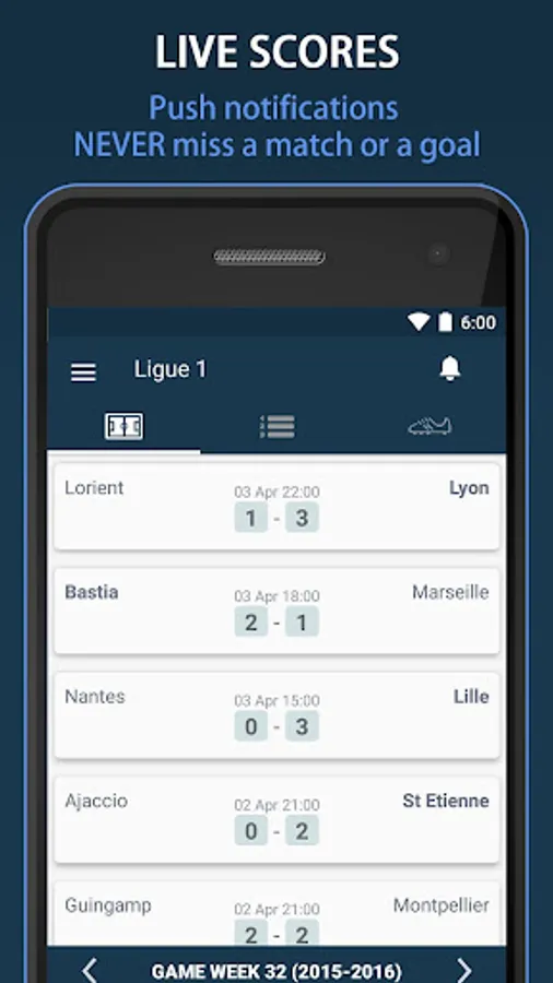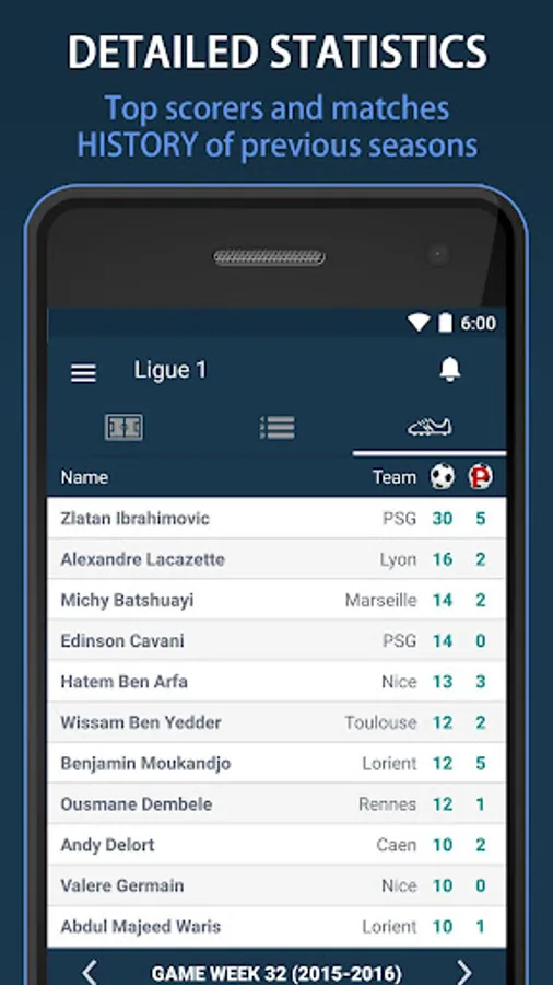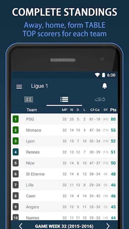 - Scores details and goals
