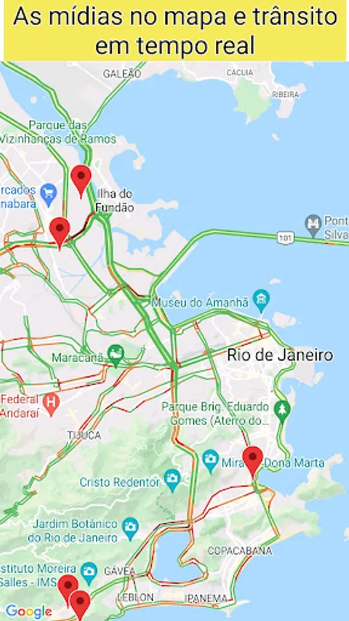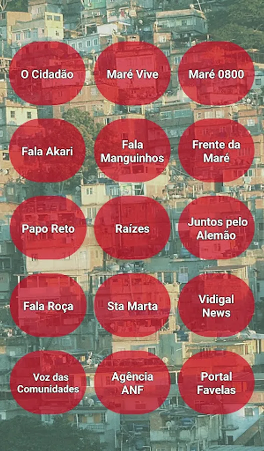 Social media produced in the favelas of Rio de Janeiro, located on the map, with real-time traffic information. Chat room between those who have the app (with Jitsi meet, free program). You can suggest new media for the next version in the app itself