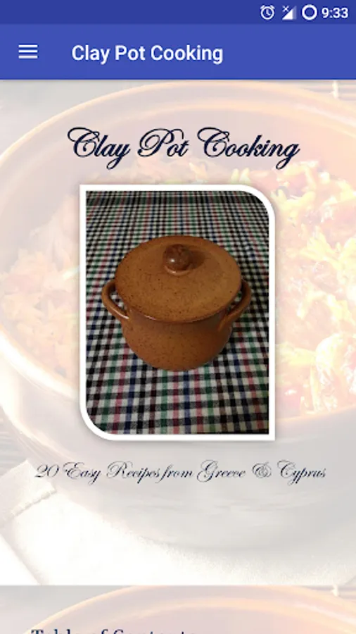 The purpose of this recipes book is to introduce you some easy-to-cook meals using a clay pot. All recipes in this book are traditional recipes from Greece and Cyprus.
