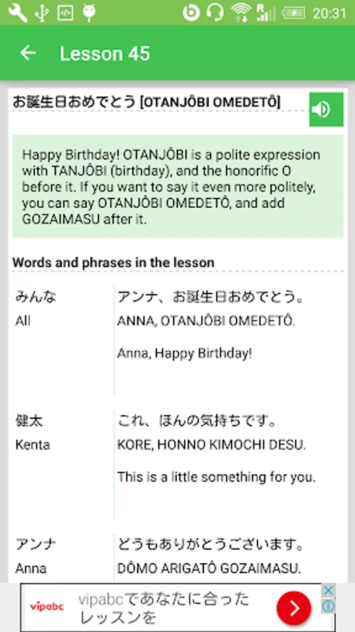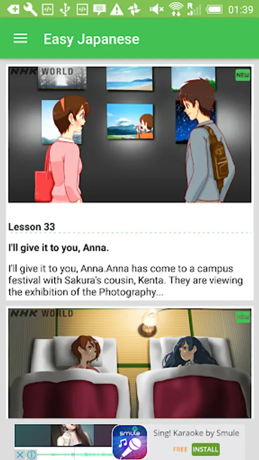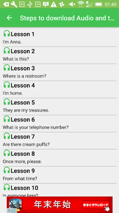 "Easy Japanese" is a program of Japanese language lessons produced by Japan's public broadcaster, NHK WORLD RADIO JAPAN. You can learn basic grammar and useful expressions through lessons designed in audio-drama style which is updated every week. You can download audio and texts for the lessons free of charge.