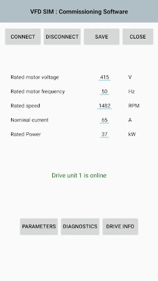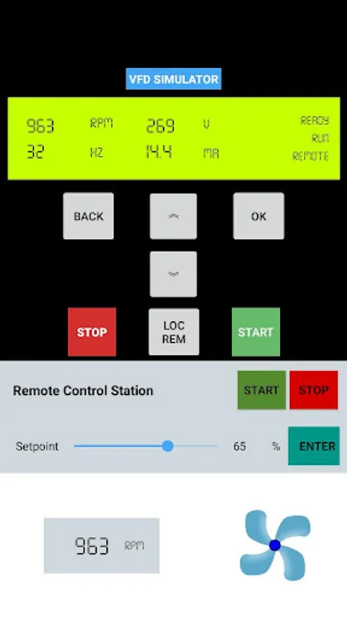 Simulate a virtual VFD and Motor on your phone. .
