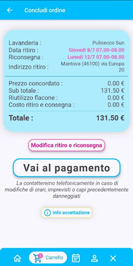 The laundry takes care of collecting the garments, washing and ironing them, and then returning them home.