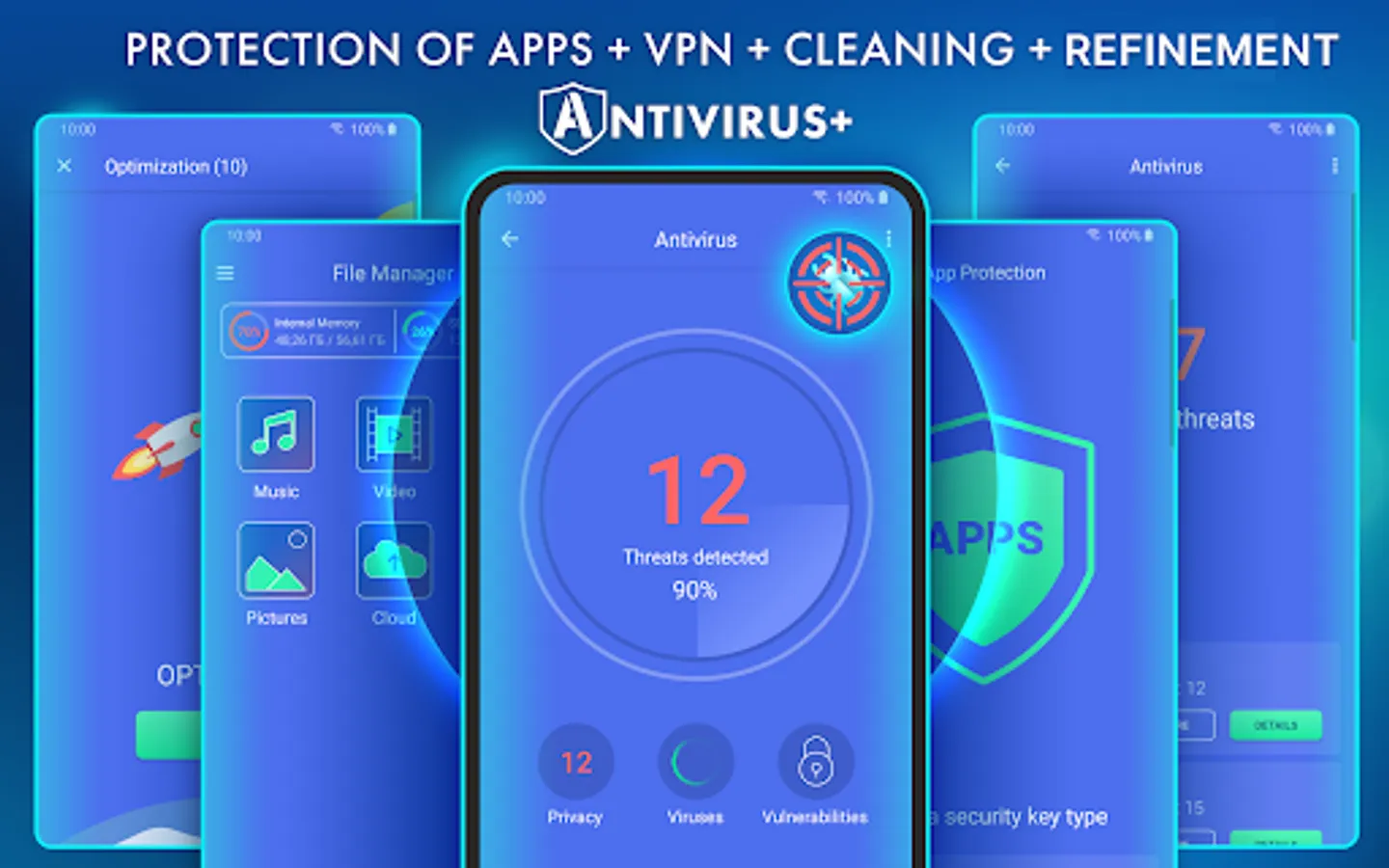Device protection against hacker attacks. The antivirus will scan, detect and delete viruses on your device. Device protection against all potential threats: viruses, trojans, malware, spyware, and adware.