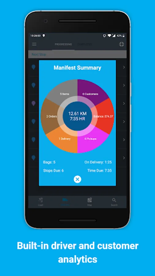 Cleantie interactive manifest uses the real-time Route Manager to provide you with step by step delivery instructions. Delivery drivers can save time and fuel with up-to-date information on traffic conditions, distances between points, and estimated travel times.