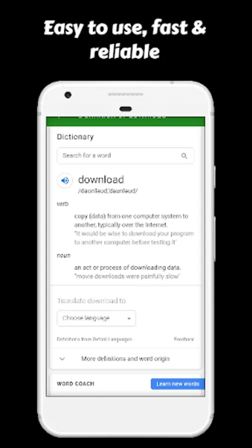 Touching a word in the list of matched words will display a definition of the word. You can change the website used to show definitions of words.
