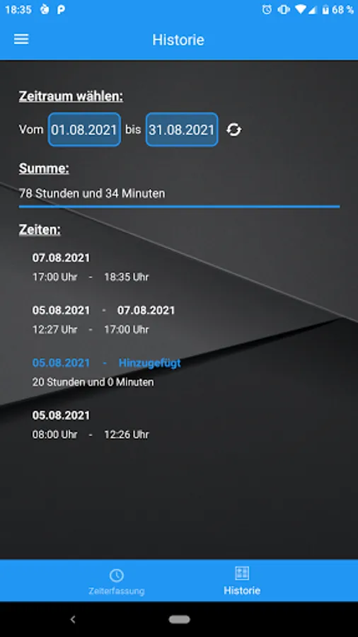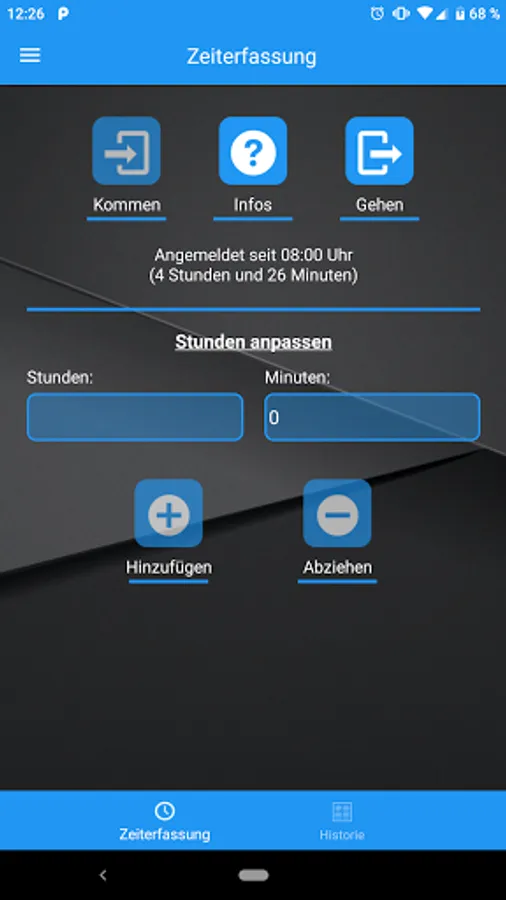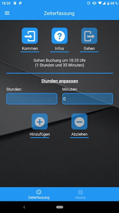 With easyTimeControl you can control your working hours or your learning times. It can be used either as a personal time recording or as a control for another time recording.