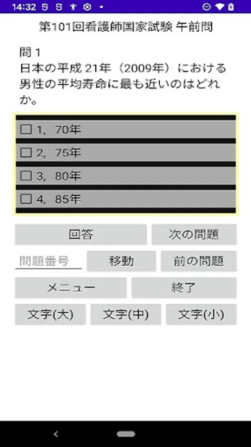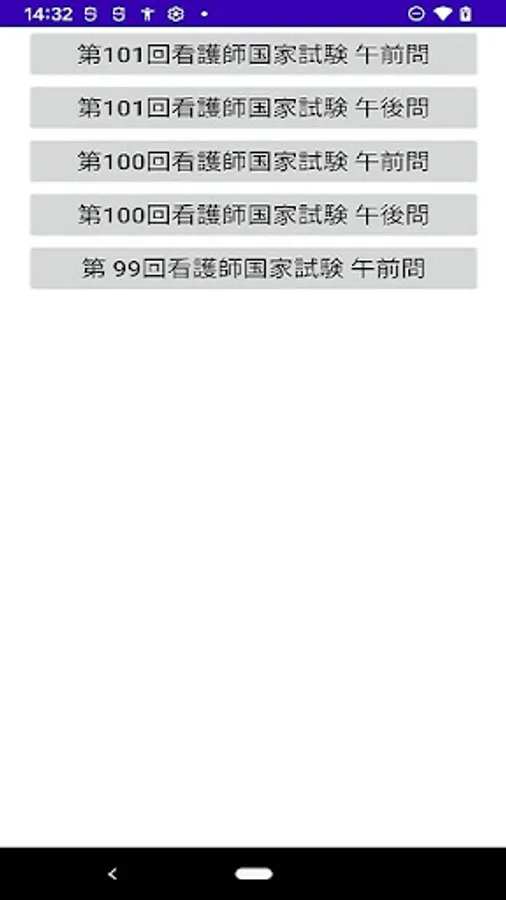 You can select questions from the 99th to the 102nd National Nursing Exam on the first page.
