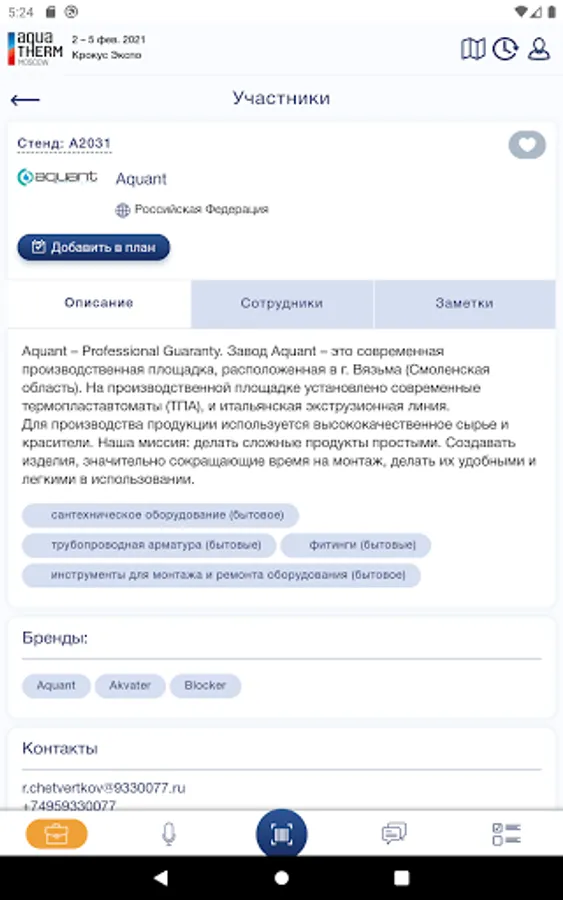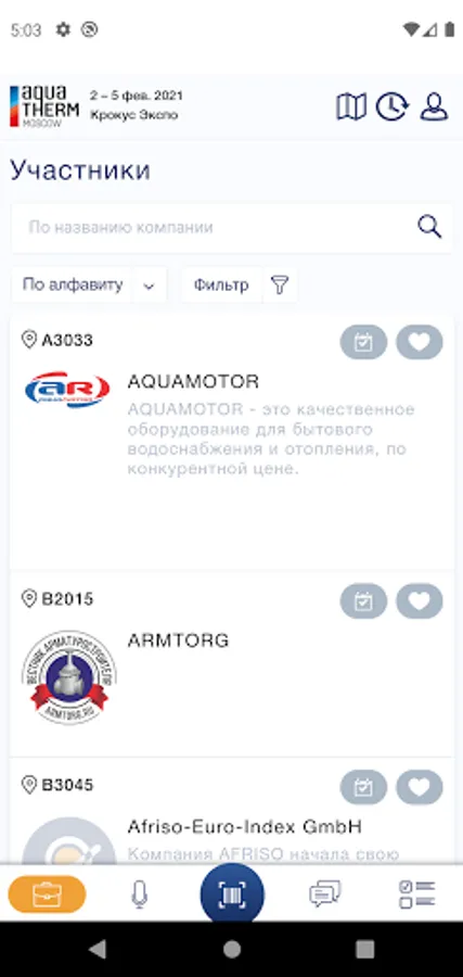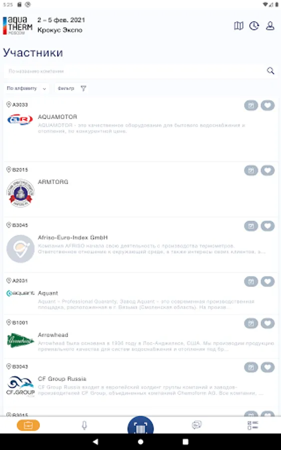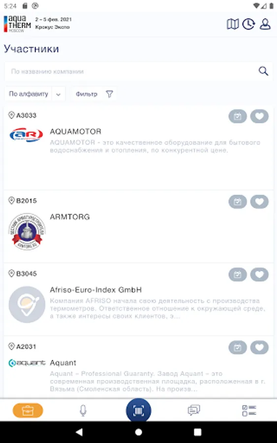The Aquatherm Click mobile application is a tool to create and manage your own plan for visiting the exhibition. Users can search in exhibitor catalogue by product group, country, brands, new products, as well as manage the list of business programme events.