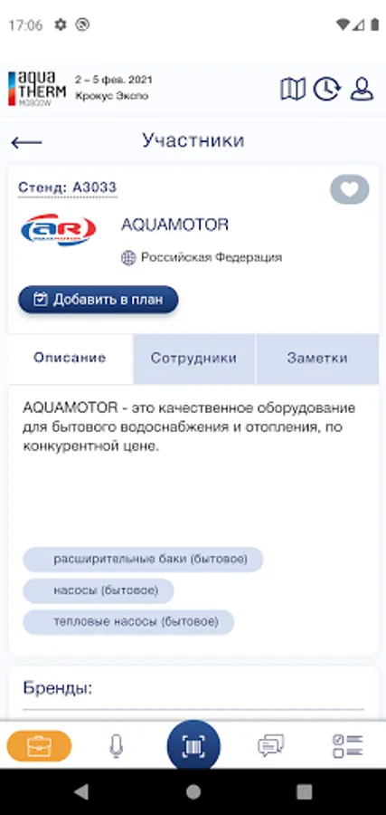 Add interesting companies and conferences to Your Plan, chat with exhibitor representatives, get notifications not to miss important exhibition events.