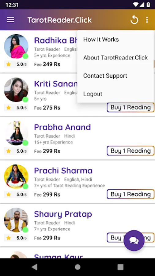Follow these simple steps to Chat a Tarot Reader on this App.