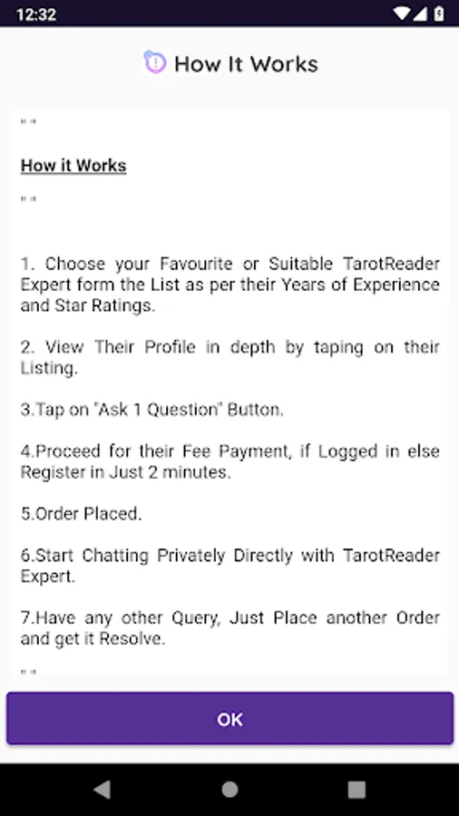 Choose a Tarot Reader : Choose from the available Tarot Reader as per your requirements. With the help of this App, you can know about their experience and specialization.