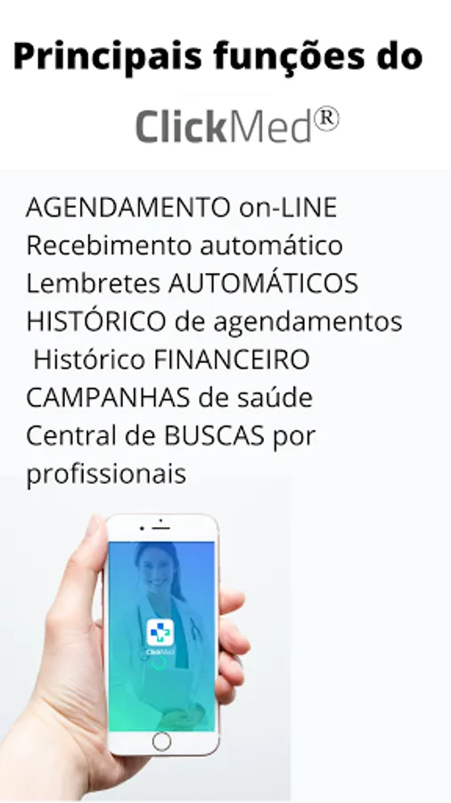 Much more than a medical catalog, ClickMed is an open application that generates more visibility to new customers, who will be able to self-book and pay directly in the app!