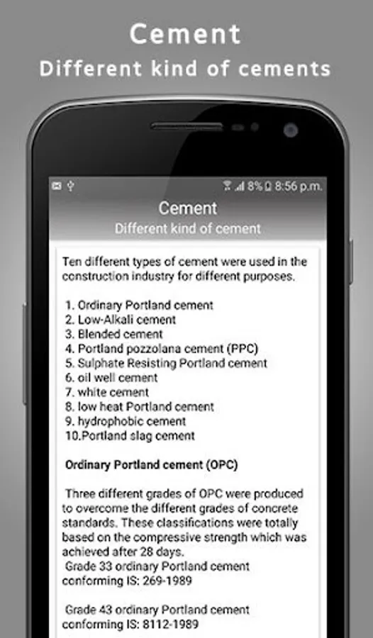 Building materials are any material (steel, brick, artifact, building stones, cement, concrete, covering material, floor material, roof material) which is used for construction purposes. A complete guide on building digital construction & material for civil engineers. This app contains all important notes of material & construction engineering, building knowledge which is a subject of civil engineering. This is very helpful building construction material app for the civil engineer, construction site supervisors, and engineers. This building construction & materials application has material for building construction, building materials estimation, building material and construction book which is very easy to understand.