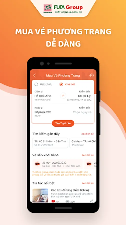 FUTA Bus Lines tickets: Buy Phuong Trang bus tickets quickly, with many convinience. Integrate payment with e-wallets, bank cards ...