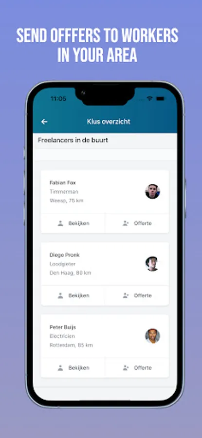 Our app is not only a game-changer for freelancers, but also for your regular employees. By downloading the app for workers, they can access real-time job information from the construction site.