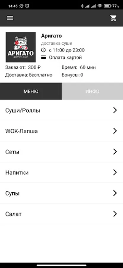 Arigato delivery of sushi and rolls in the city of Kaliningrad.