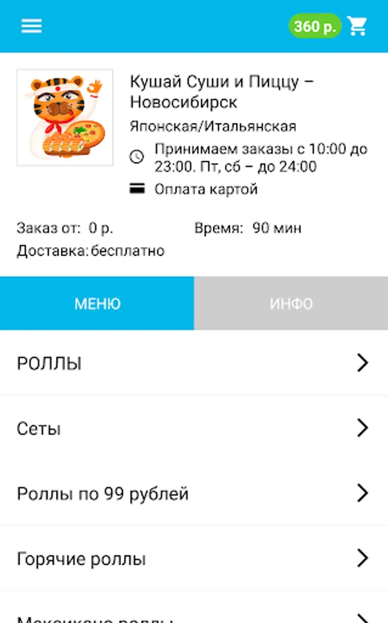 Thank you for choosing us! We will deliver to your home or office the most delicious sushi, rolls and pizzas, WOK! Just place your order! By the way, we do not pre-cooked dishes! Your request goes to the kitchen immediately prior to dispatch, which means that you only get fresh food!