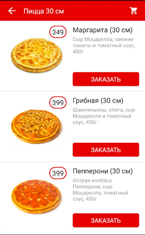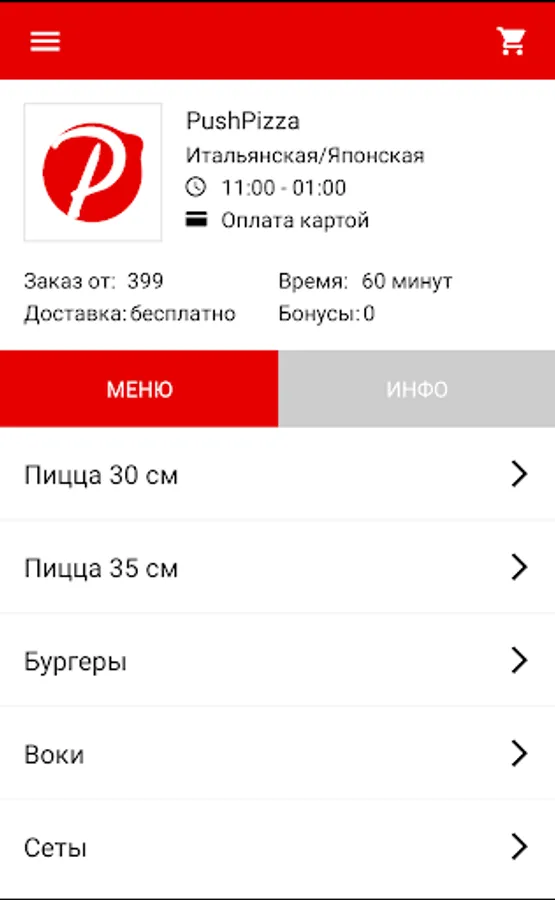 The app for easy ordering food delivery service in PushPizza.