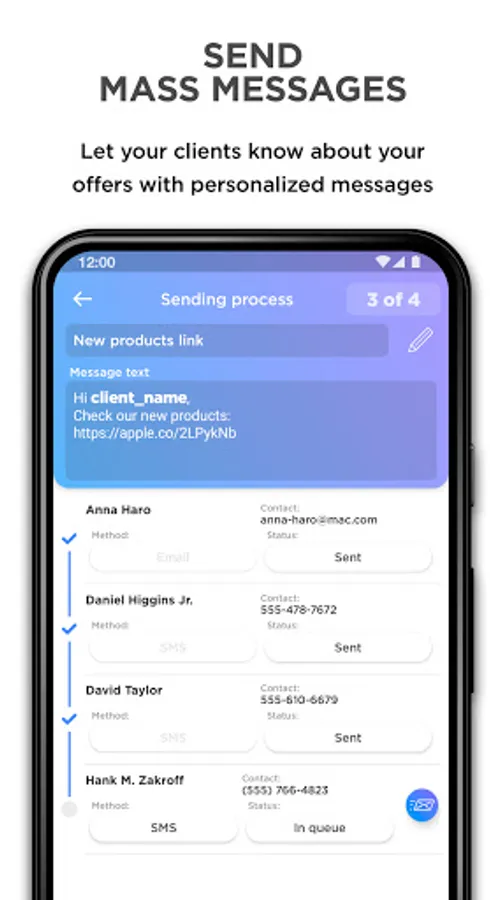 Clients app provide you new ways to interact with your clients — your physical presence at the desk is no longer required, as the same tasks can now be performed remotely, wherever you may find yourself — external meetings, on the road, at home. Make notes, import contacts, add reminders, send emails and SMS, call your customers from Clients app.