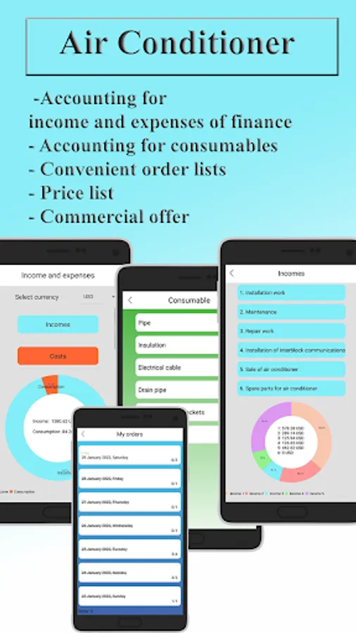 This section will help you control the income and expenses of your finances for positions related to the sale, installation, repair and maintenance of air conditioning systems.