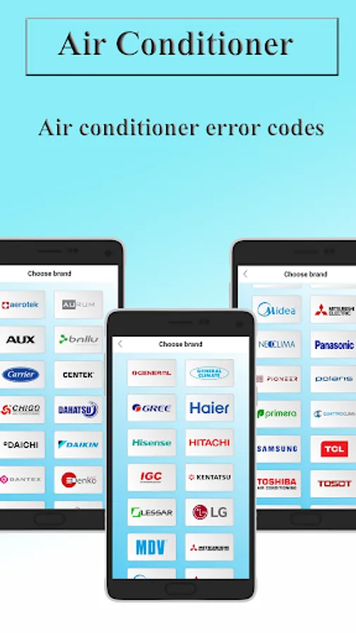 This section contains a huge directory of error codes for air conditioners of world brands.