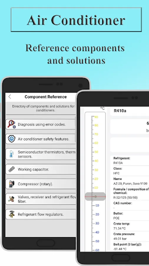 The application contains all the tools for the daily activities of the master of air conditioning systems. The application contains sections such as: error codes for air conditioners, a directory of components and solutions for air conditioning, the ratio of pressure units, a ruler for converting temperature to pressure, and the application also has business sections where you can manage the intake, balance and consumption of consumables, keep accounting of income and financial expenses, it is possible to generate and send to the buyer a commercial offer, a price list and a guarantee document. Also in the sections of the application, you can create, receive and send applications to other performers for any date and time.