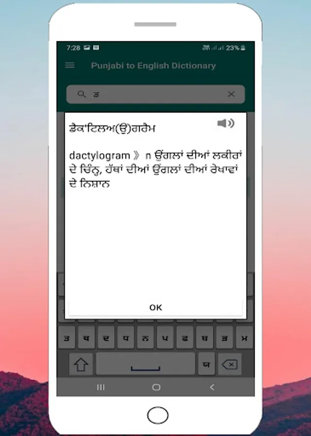 The best Punjabi Dictionary is here where you can easily search any words you are seeking for. We can also name the dictionary as English Punjabi Dictionary or Punjabi English Dictionary . This is not only a dictionary but also a learning tool . You can use it without Internet and carry a big dictionary wherever and whenever you go in jut a small smart phone. Translator and text to speech is also available for the users . When you start typing, you will see some words starting with the letters you typed. This application will be helpful to any students or non students etc to find out the meaning of any word.
