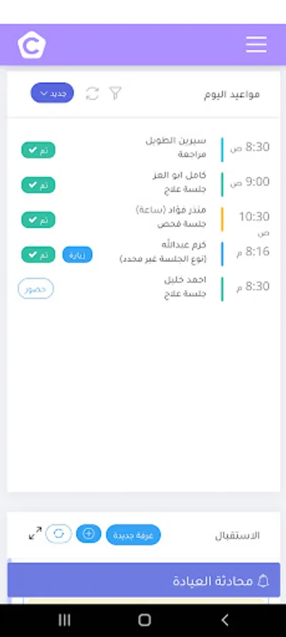 ادارة المواعيد وتصنيفها لكل حسب الاطباء وحسب الجلسات