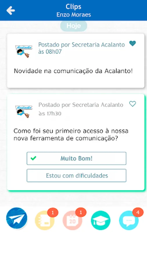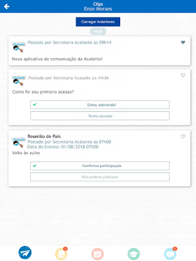 Now you can follow your child's day in the palm of your hand! In addition to receiving photos, announcements and student routine, through the application you can also get in touch with Acalanto! Install the app now and be part of it!