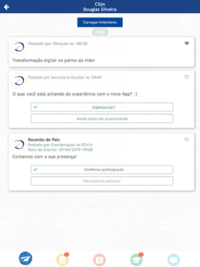 This application is intended for communication between the Pastor Dohms High School Center and the families of the Teaching Units Alvorada, Capão da Canoa, Higienópolis, Taquari, South Zone and North Zone and the Colégio Sinodal Tramandaí.