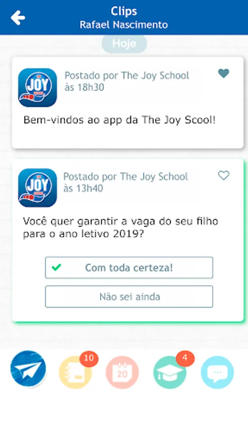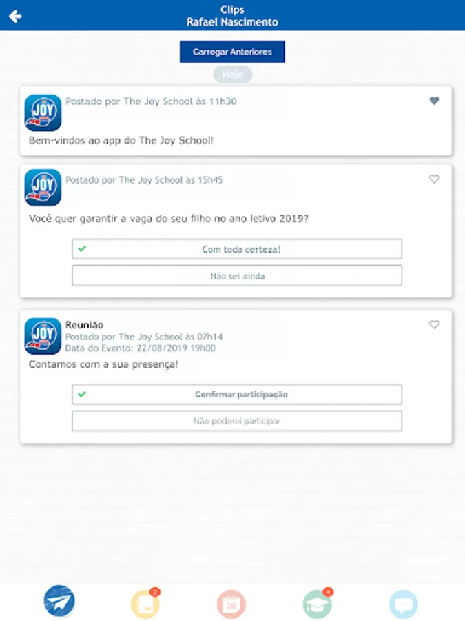 For over 10 years sharing a Bilingual educational experience, The Joy School College is now present in the best app stores, offering an incredible parent-school experience. You know that old paper calendar? Now it's reshaped, totally electronic and interactive! Download the application and know the facilities! You can follow your child's routine, exchange messages with the school, and enjoy the schedule of events fully synchronized with your Google calendar. And there's more! Are you in traffic? Just a few clicks and you let the school know you're coming! EnJOY this exceptional experience!