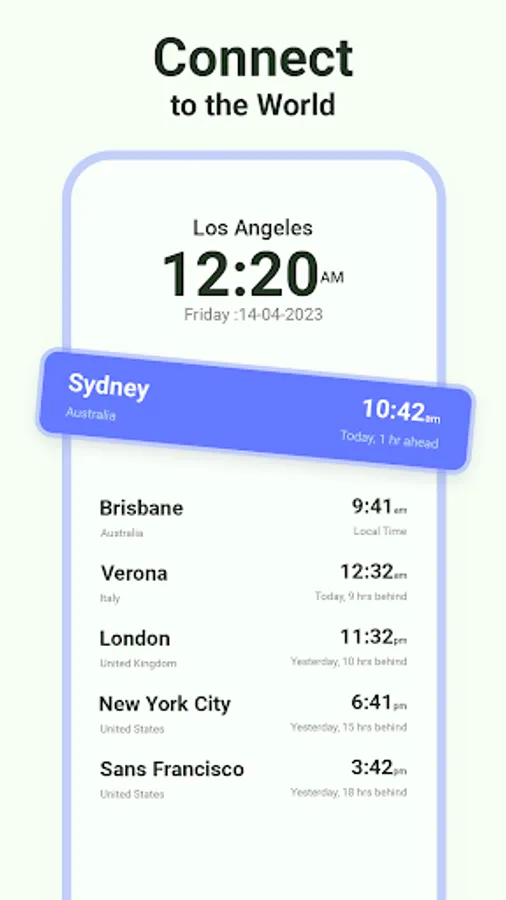The Clock has a built-in World Clock and widget to keep track of time around the world. Whether you are a traveler, a business person or someone who has relatives abroad, The Clock offers a beautifully designed World Clock where you can customize and add as many cities as required.