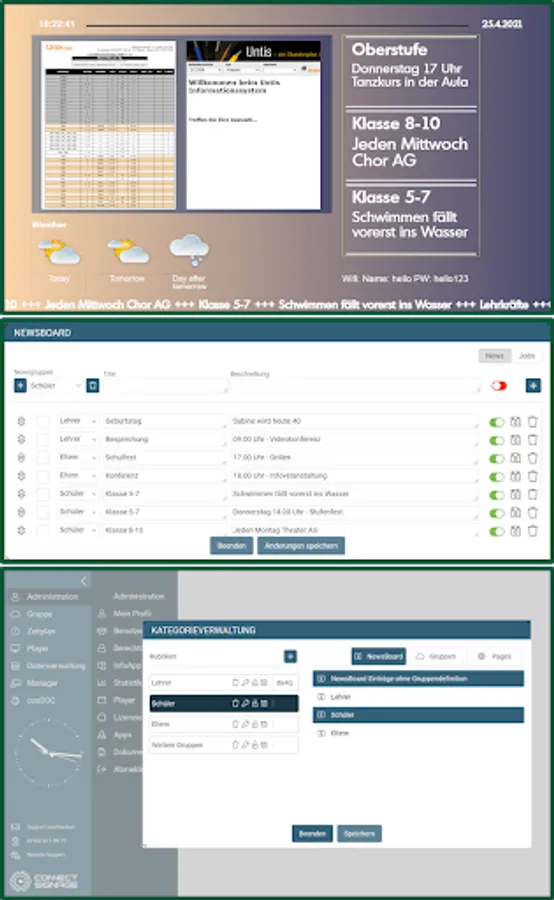 The connectInfo app is the ideal complement to the digital signage software connectSignage and connectSchool.