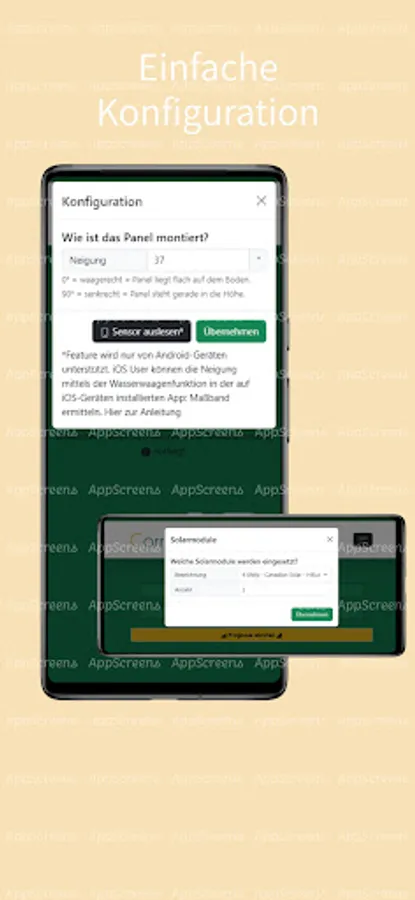With this app you can specify the inverter used and the type of PV module to get accurate forecasts. In addition, you can determine the orientation of your system to the south and the angle of attack to the sun. If you have an Android mobile phone, you can even use the integrated sensors to automatically read out these two values. Just hold your smartphone to where the solar panel will be installed and get precise measurements for a more accurate forecast.
