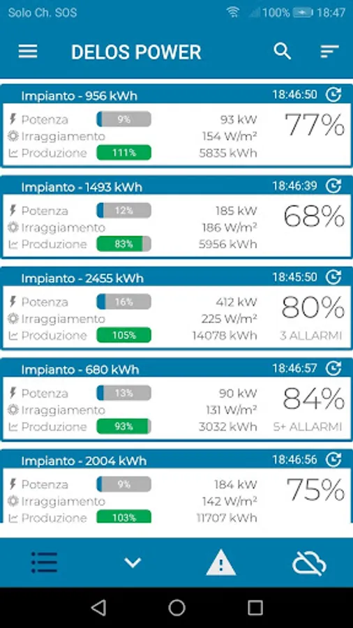 Thanks to the interface, you can immediately control your system from any device that has an internet connection: secrecy and privacy during the consultation are guaranteed by the use of the SSL security protocol. The numerous menus made available make Delos Eye System a suitable tool for consultation by both technical and management users. If you want to monitor multiple systems, on the first page you will find a summary screen showing the status and performance of each.
