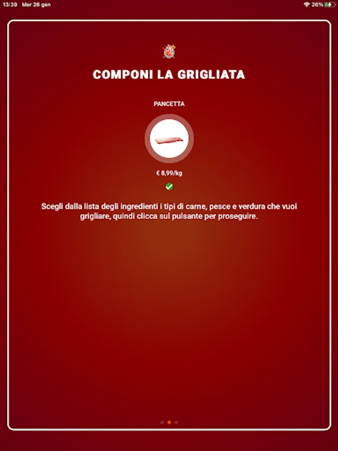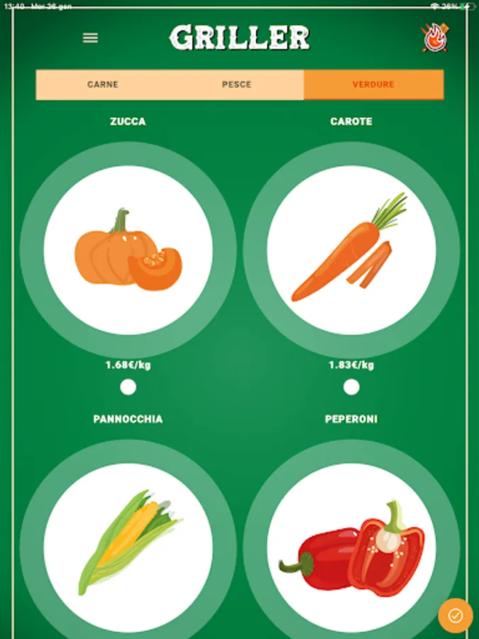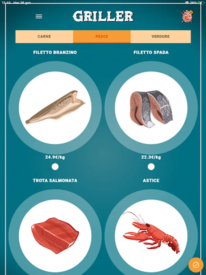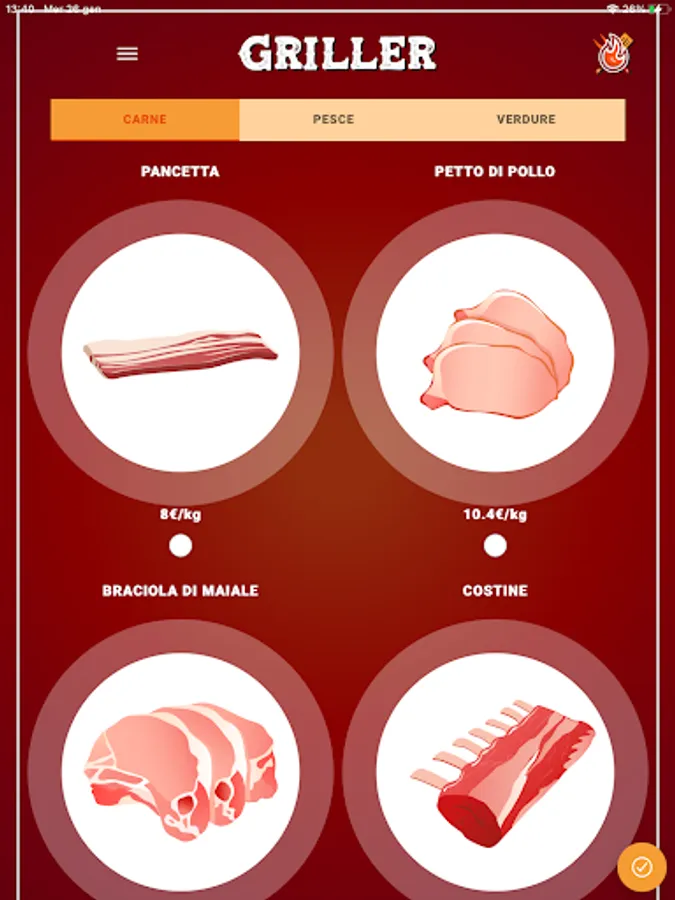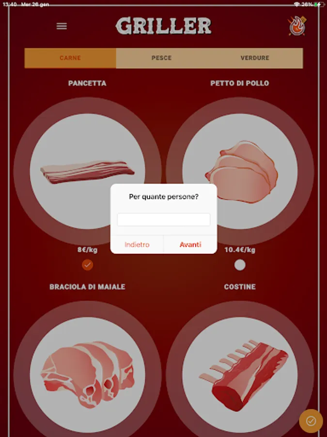 Choose the types of meat, fish and vegetables you want to grill from the list of ingredients, then click on the button to continue.