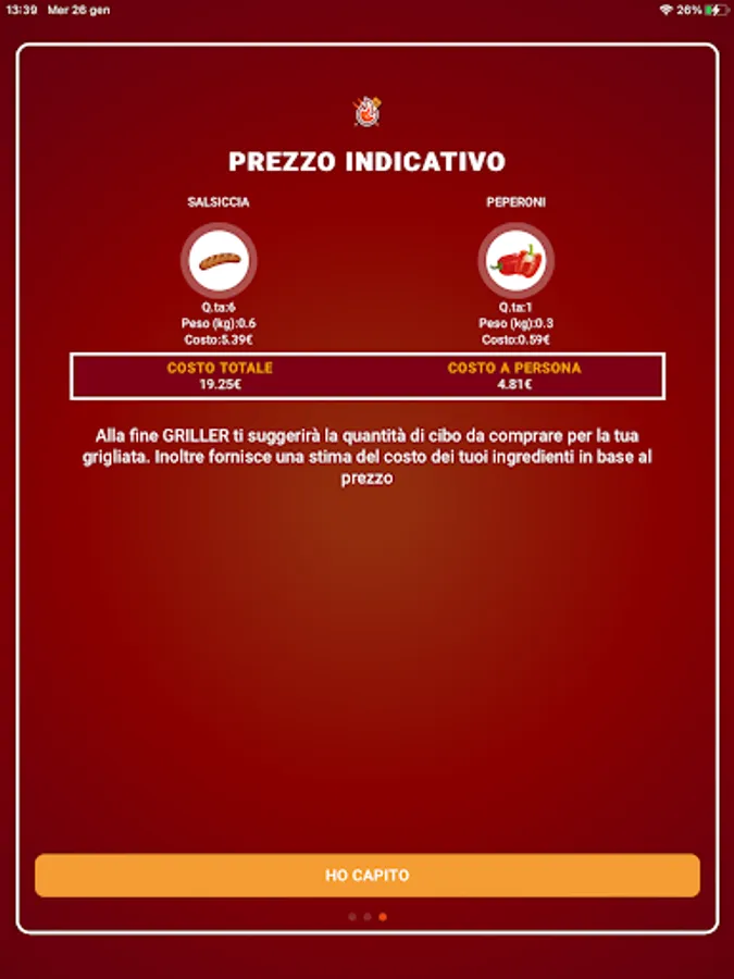 At the end GRILLER will suggest the quantity of food to buy for your barbecue.