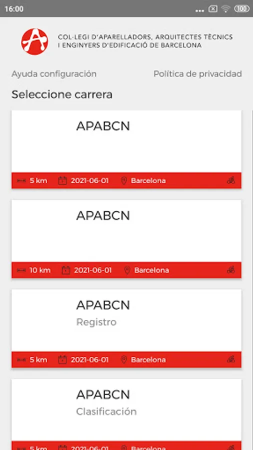 The user runs the application, chooses the race in which he will participate and enters his identifier. From that moment on, the race is tracked. It is necessary to access the location in the background as the user turns off the screen of the mobile and performs the race, and it is necessary that the mobile is sending the position in which it is at all times.