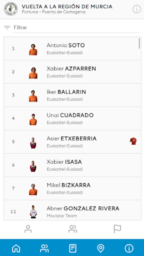 Follow the Cycling Tour of the Region of Murcia live with all the data of the race and participants