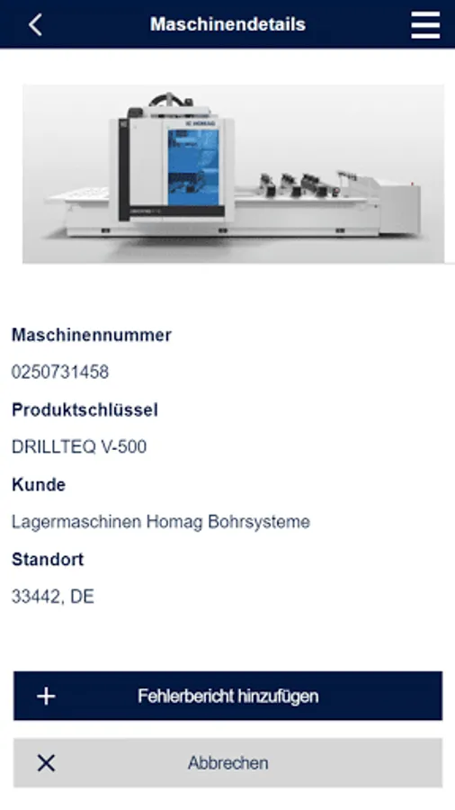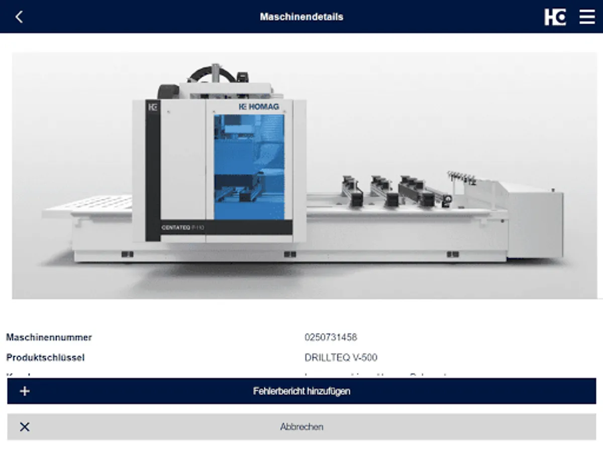 1. Scan the QR code on the machine with the HOMAG Group, or start with the machine number / customer name.