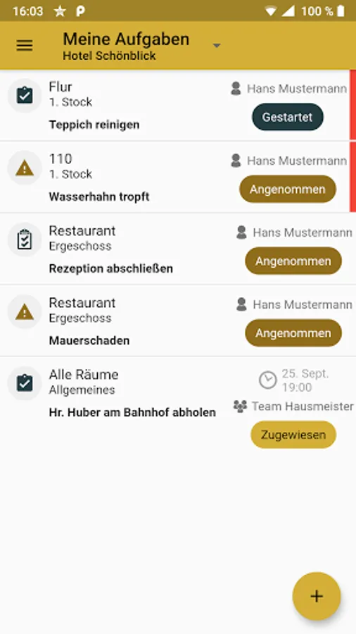 The hotel manager always has an overview of open tasks and defects via the web app.