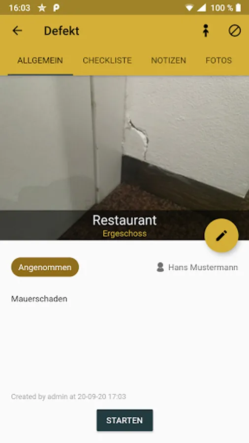 Tasks and defects can be recorded via the web app or the app and assigned to employees or teams. Employees take on tasks and carry them out.