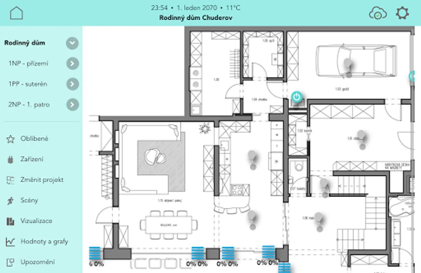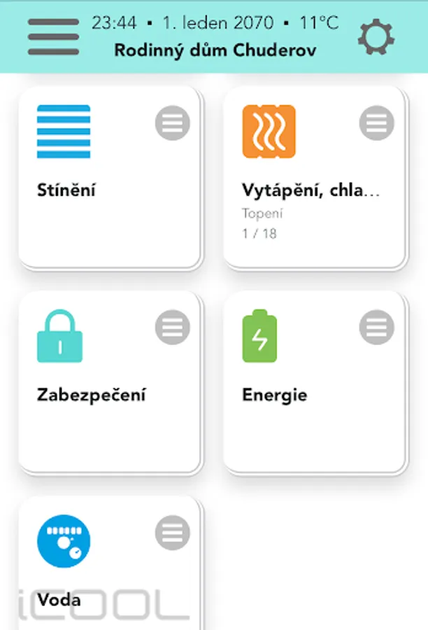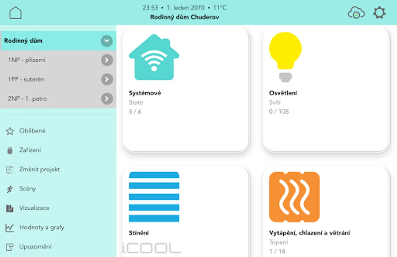 The application is designed to access the iCOOL version 4 system, which can connect all systems in the house (heating, ventilation, cooling, lighting, shading, security, consumption measurement, etc.) into one clear interface.