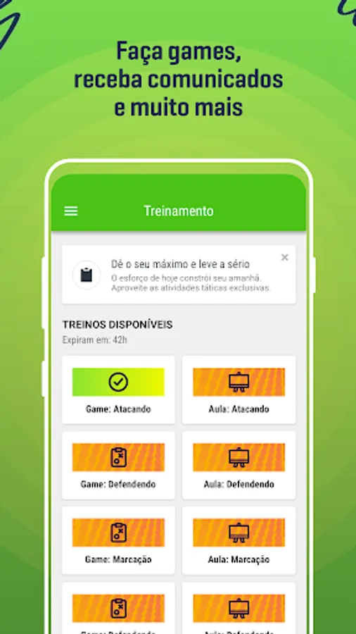Through the application, the athlete can still test his decisions on the field and learn from games and exclusive classes of the club.